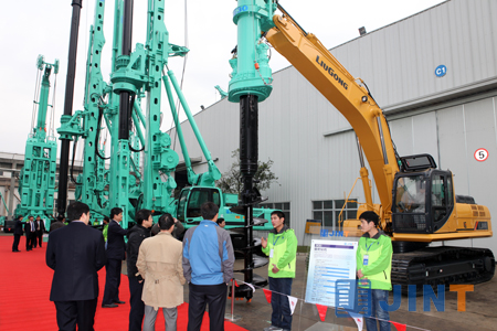 展示会集中展示了上海金泰近年来研发和生产的适合各种复杂地质条件施工的桩工机械产品30余台(套),其中SX30轻型双轮铣、SE30旋挖钻机、SD20C多功能钻机、超深液压挤压钻具、液压挤扩钻具、导杆式抓斗等新产品和钻具首次对外公开亮相。在展示现场,参会代表对金泰各系列产品表现出浓厚的兴趣,或驻足观摩机械师的操作演示,或详细了解技术人员对产品性能和各技术参数的介绍,或三五成群与公司营销人员一起讨论经销合作细节……