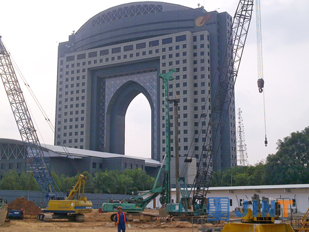 曼谷市中心TAKSIN ROAD地下通道工程,设计全长1.2KM,通道主体位于地下10M,为了保持侧墙的支护强度及同时完成防渗功能,施工方与金泰的技术人员共同制定了以SG46液压抓斗进行支护防渗施工工艺,这是泰国首次在公共建筑中采取此种工艺,SG46不负众望,以日均完成360立方的效率博得客户的赞赏;