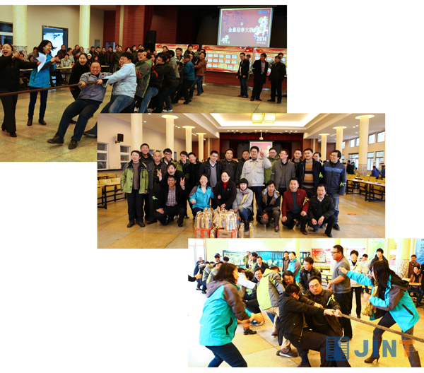 【2014年迎春拔河比赛】“加油!加油!”上海金泰公司一年一度的“迎春拔河比赛”在公司餐厅举行。本次比赛共有8支队伍参加,经过多轮淘汰,最终以营销公司赢得“2014年迎春拔河比赛”冠军。