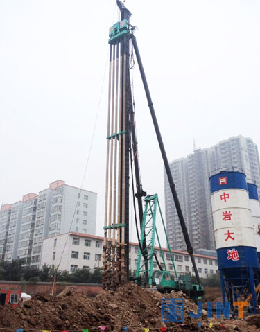 日前,从山西太原南海集团工程部传来消息,上海金泰最新推出的ZKD85-5五轴钻机在其公元时代城项目桩基础工程试桩首秀时表现不凡,以平均65分钟的速率完成单幅2.4mx26m(成墙宽2.4米,深26米)的搅拌墙施工,与传统三轴搅拌设备相比,施工效率提升一倍以上,得到了业主高度赞誉。