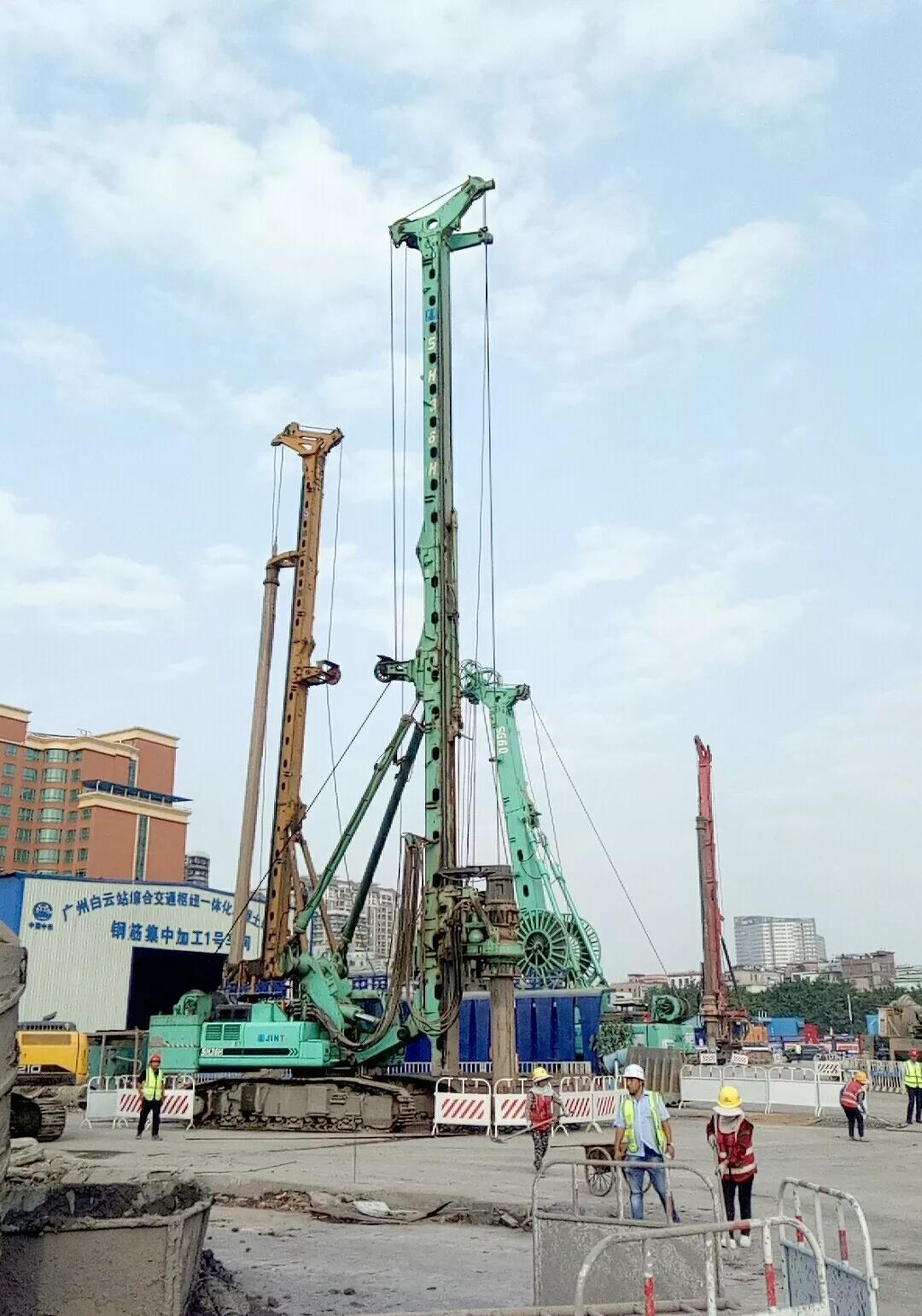 目前,广州铁路枢纽白云站(棠溪站)建设正如火如荼的开展着,数以十计的工程机械厂家前赴后继进入该工程,这里俨然成为了最热闹的“战场”之一。幸运的是金泰双轮铣、抓斗、旋挖产品在“羊城”这块宝地多处获得了“种豆的瓜”的好收益,在工民建、桥梁、高铁站等等大项目中,赢得大量新老用户的拥戴。此次也不例外,金泰双轮铣、抓斗、旋挖3款拳头产品正一同参与其中施工,同时唯独金泰携3种工法亮相此项目并配合工地解决现场复杂地层施工难题。