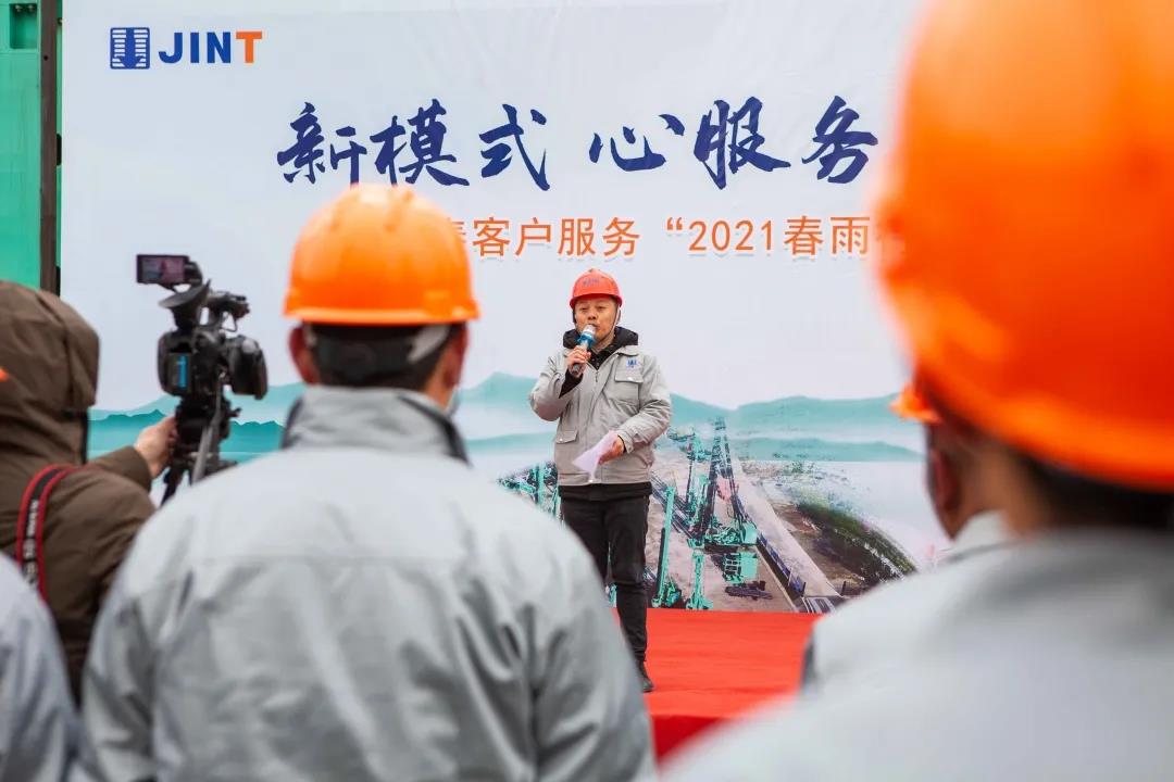 2021年为进一步完善客户朋友的服务体验,从“再制造基地”到“服务再升级”和“机手赋能”。“春风化雨,服务有形”出征仪式即是上海金泰客户服务“2021春雨行动”计划的践行起点,该计划映衬着2021的金泰售后服务将如风如雨迅疾温暖,如风:行动如风,像春风般所到之地处处生“香”,如雨:服务如雨,像“及时雨”久旱逢甘露般滴滴润人心。