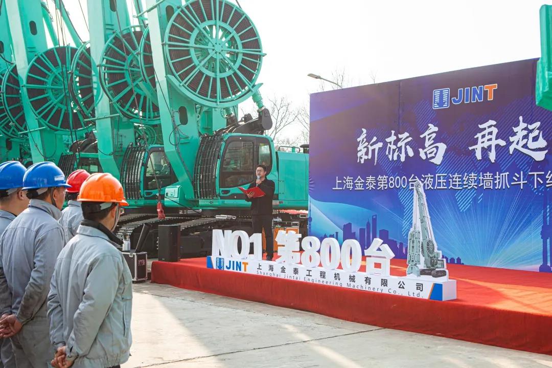 1月21日上午,微雨初歇、春意渐浓。以“新标高,再启航”为主题的上海金泰第800台液压连续墙抓斗下线仪式在金泰本部举办。根据疫情防控要求,下线仪式未邀请外部用户,也没有组织大规模的聚集活动,由公司总经理黎隶万、党委书记陈雪英、公司高级顾问林坚、公司董事、副总经理兼营销公司总经理徐峰、纪委书记工会主席陈月萍等公司领导带领各条线负责人以及部分一线员工在金泰产品展示广场共同见证了金泰第800台抓斗下线及交付过程,整场仪式既简约又隆重。