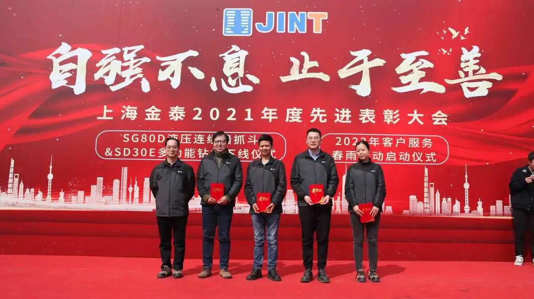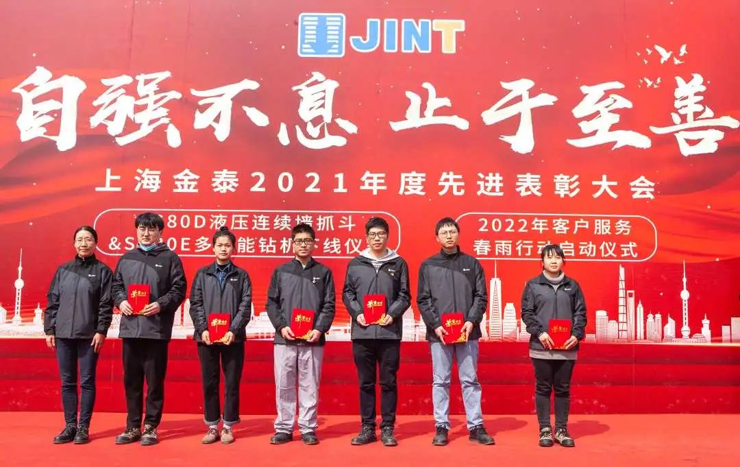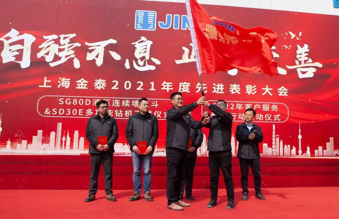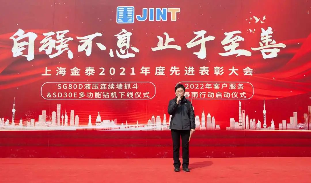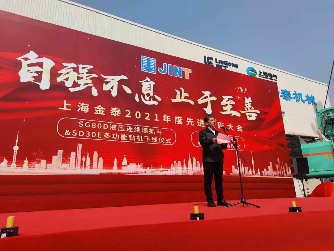 “下线!”“出发!”“励志!”   3月2日,上海金泰SG80D液压连续墙抓斗与SD30E多功能钻机下线、2022年客户服务春雨行动启动仪式暨2021年度公司总结表彰大会隆重举行。
