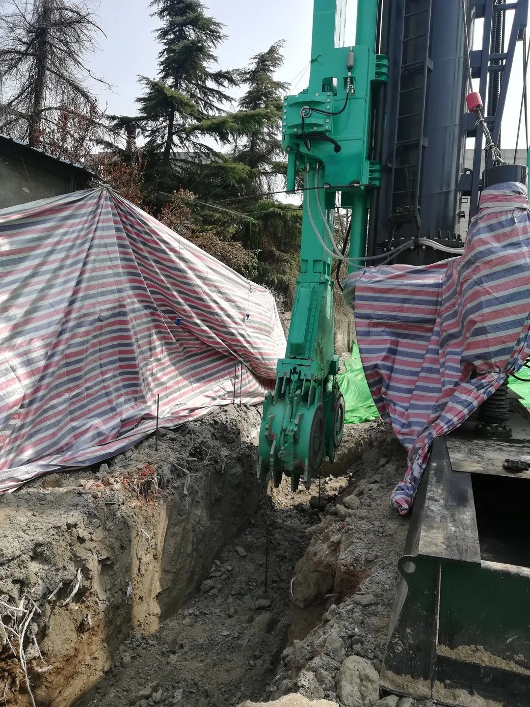 该项目止水帷幕施工主要采用SC55双轮搅拌钻机施工。