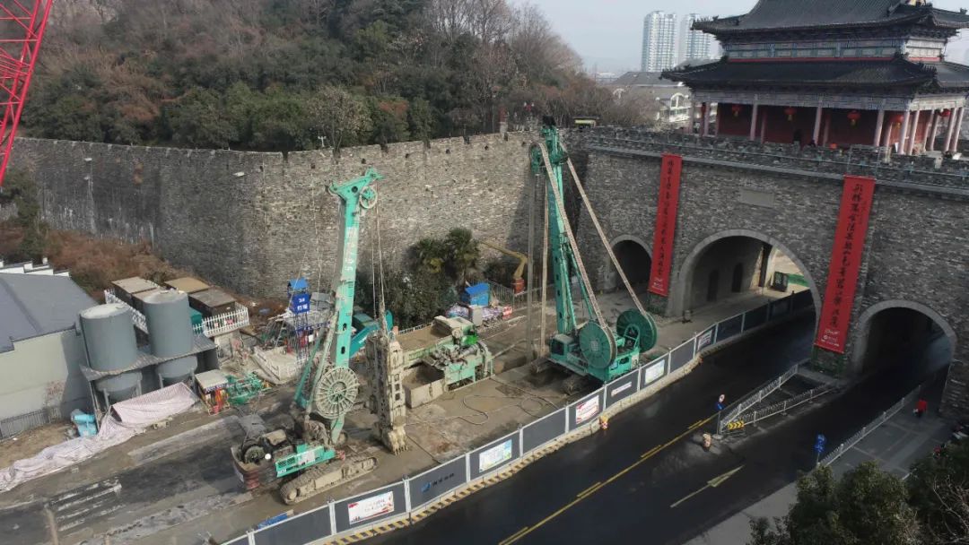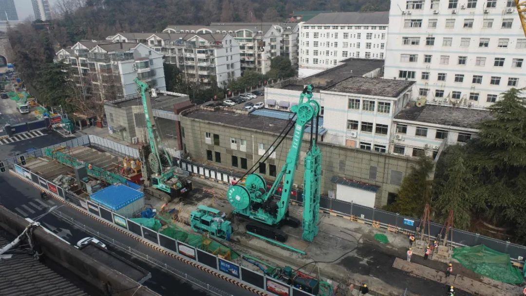 从中不难看出,金泰国地连墙产品从开创至今,设备产品力和市场占有率一直保持在国内行业前沿,施工纪录也一路保持领先。目前,金泰桩工设备在各省、市重点项目,国家重点工程中表现活跃,建设正酣,其南京市鼓楼区最为典型,一条建宁路上,每相间500米就有金泰设备的身影在施工。