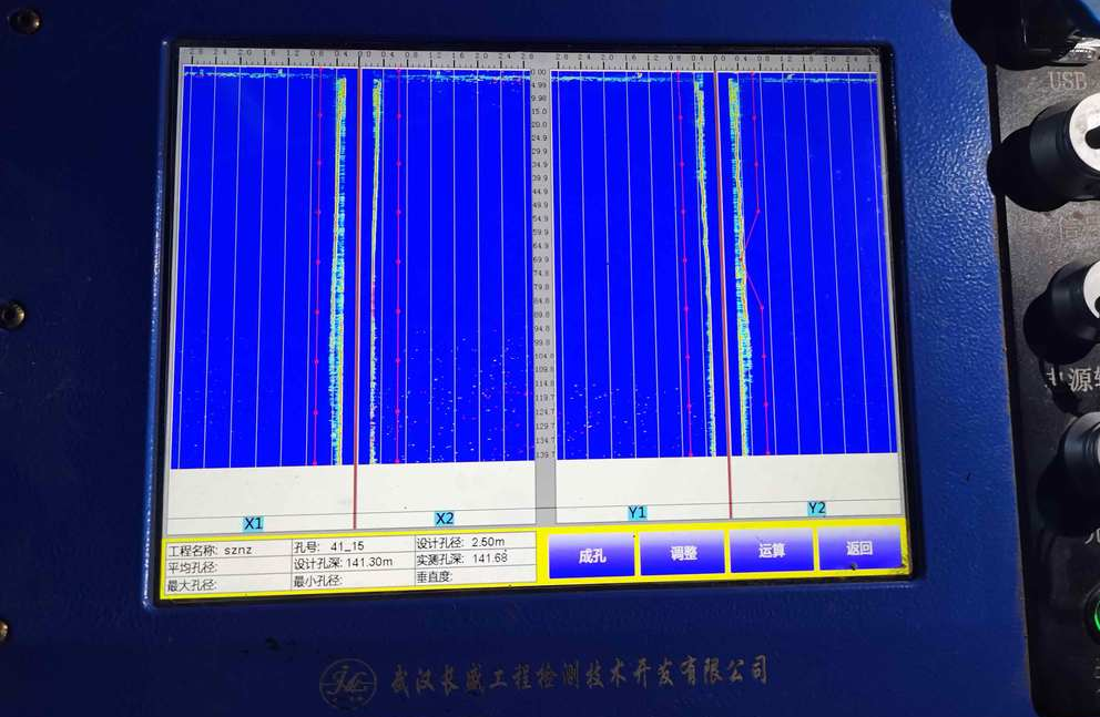 8月12日,金泰大型旋挖钻迎来沪苏嘉城际铁路首根141m超大深桩的试桩成功。终孔后项目部工作人员立即对其垂直度进行检测,检测结果如下图。吸取第一根成桩的宝贵经验,金泰后市场服务人员与技术人员在现场实时数据比对,钻具比量,不断优化施工方案,力求在原有的施工效率上再有所提升。