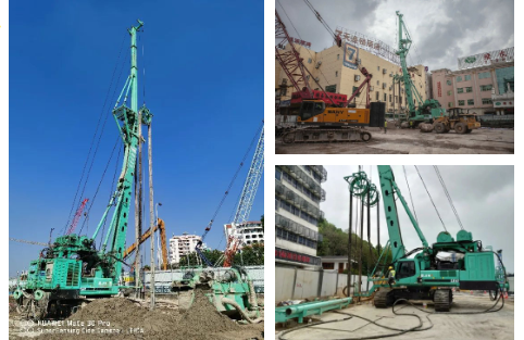 为了提高T3航站楼扩建项目地连墙施工的进度与精度,现场均采用“抓钻铣”组合工艺进行施工。该施工工艺久经市场考验,成墙效率可提升40%以上。另外,“成墙快不快的关键,还得看旋挖引的直不直”。白云机场T3航站楼扩建项目对于垂直精度有着严苛的验收标准,现有多台旋挖设备引孔未能符合要求,金泰SH38旋挖钻机凭借自身深厚的技术底蕴,无论在硬地层和超深引孔均无一偏孔,施工顺畅,得到了现场项目部的一致认可。