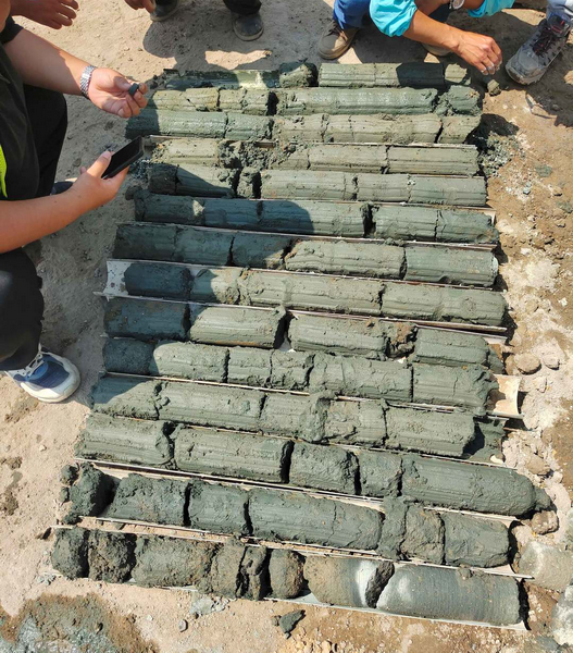 金泰SC35\SC55\SC55B双轮搅拌钻机为该拟建场地主要成墙设备。该场地施工桩深度14-16m,槽宽700mm,长2500mm,工作状态平均每台设备可完成7-8根桩,现已完成300余幅。据了解,该施工场地内有大量富水砂层且临近海边,地下水渗透性强,场地内有大面积水塘,经过近20天的止水施工作业,水位下降明显,止水效果显著。