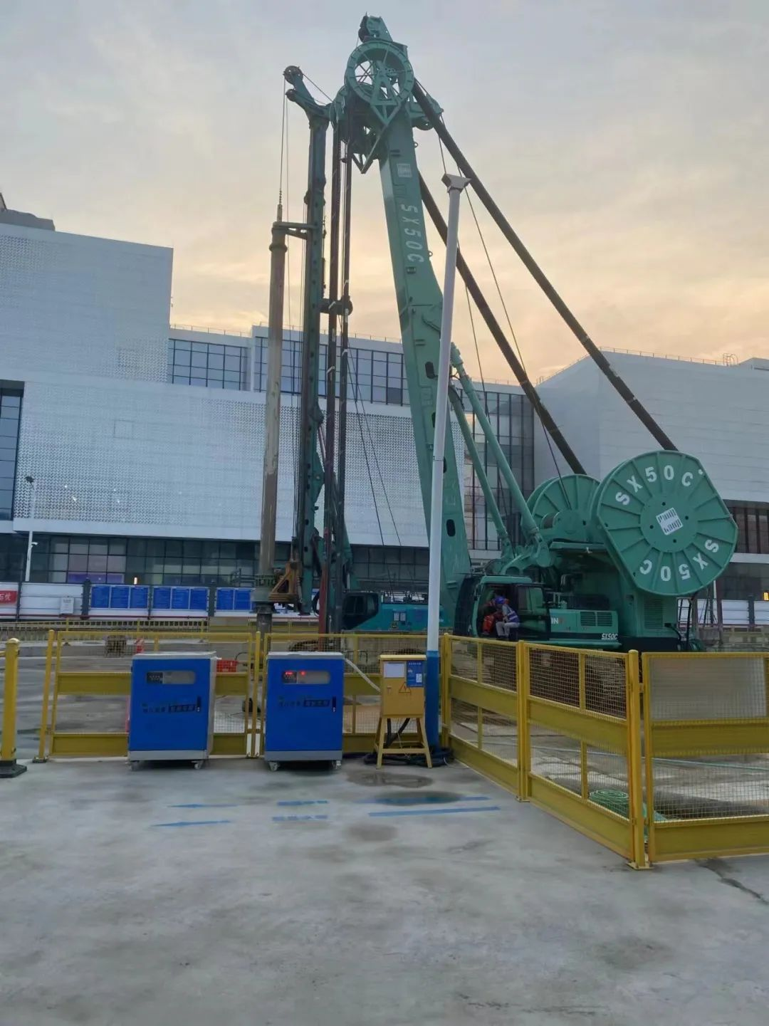 值得一提的是,现场地连墙产品均为金泰品牌,其中3台双轮铣(两台 SX40A,一台SX50C)已在现场连续施工了5个月之久,充分展示了其设备的稳定性和耐用性。在整个施工过程中,这些设备始终保持着高效稳定的运行状态,为项目的顺利推进立下了汗马功劳。